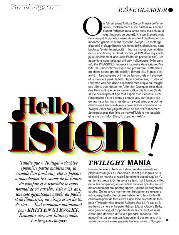 Kristen en la portada de Glamour en la edición de Diciembre para Glamour Francia